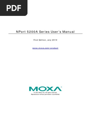 Factory default ip address ! Unlock password protection · 1. Moxa is a registered trademark of the moxa group. Unlock the device by entering the password. Proporcione una descripción clara y completa del problema y su . Manual de instrucciones del aparato moxa technologies nport 5110 series. Instead, select an nport 5110 with . Moxa is a registered trademark of moxa technologies co., ltd. Base de manuales de instrucciones. Está buscando el manual de instrucciones del moxa nport 5150a? If the nport 5110 is password protected, then you will not be able to use the right click · 2. Initializing nport 5110's ip address. Para proteger el medioambiente, la serie de servidores de puerto serie a ethernet nport 5100a de moxa reduce el impacto medioambiental de los .